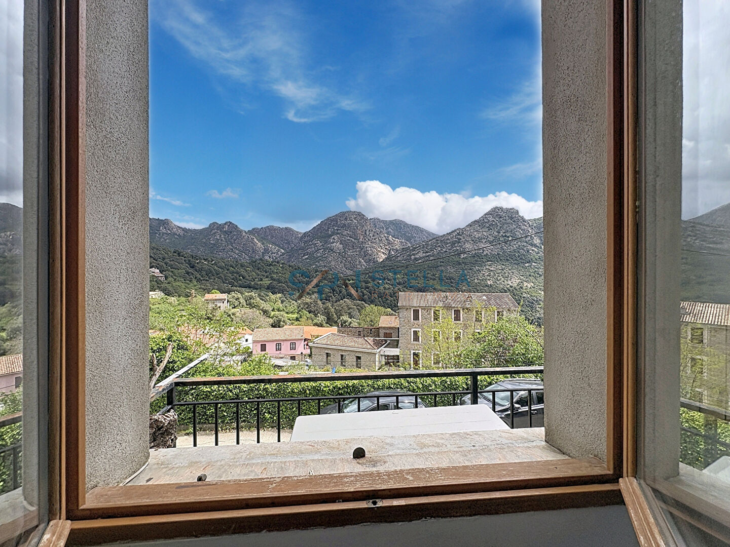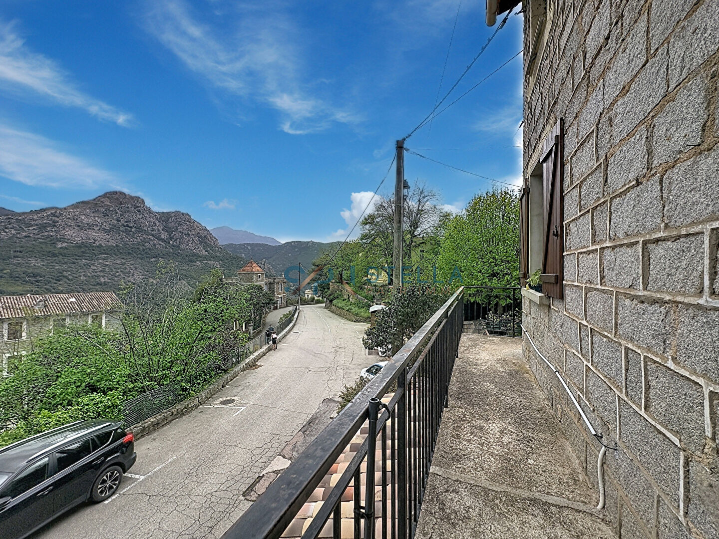 L’appartement se trouve dans une bâtisse typique de village. L’accès se fait par un balcon offrant une belle vue dégagée sur les montagnes.