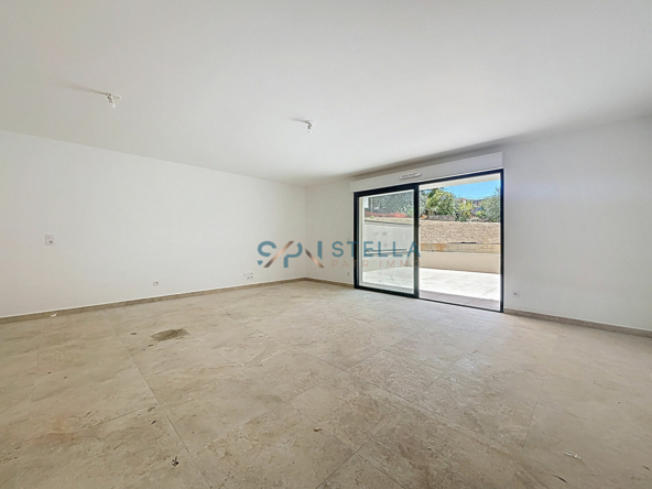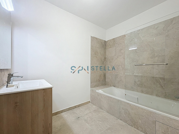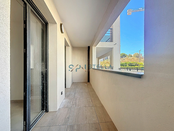 Cet appartement T3 de 73,60 m² se compose d’une entrée, suivie d’un dégagement menant directement à un lumineux séjour/cuisine de près de 34 m², ouvrant sur une grande terrasse exposée sud de 33,50 m².