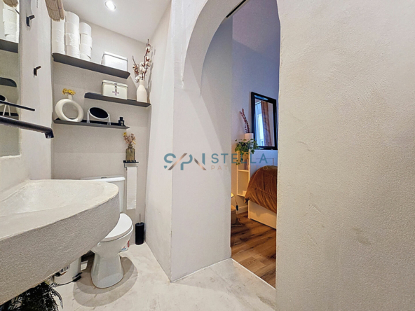 Alliant caractère et confort contemporain, le logement séduit par sa belle hauteur sous plafond et ses voûtes qui lui confèrent une atmosphère unique. La cuisine neuve, moderne et entièrement équipée, offre des rangements optimisés et des matériaux de qualité.