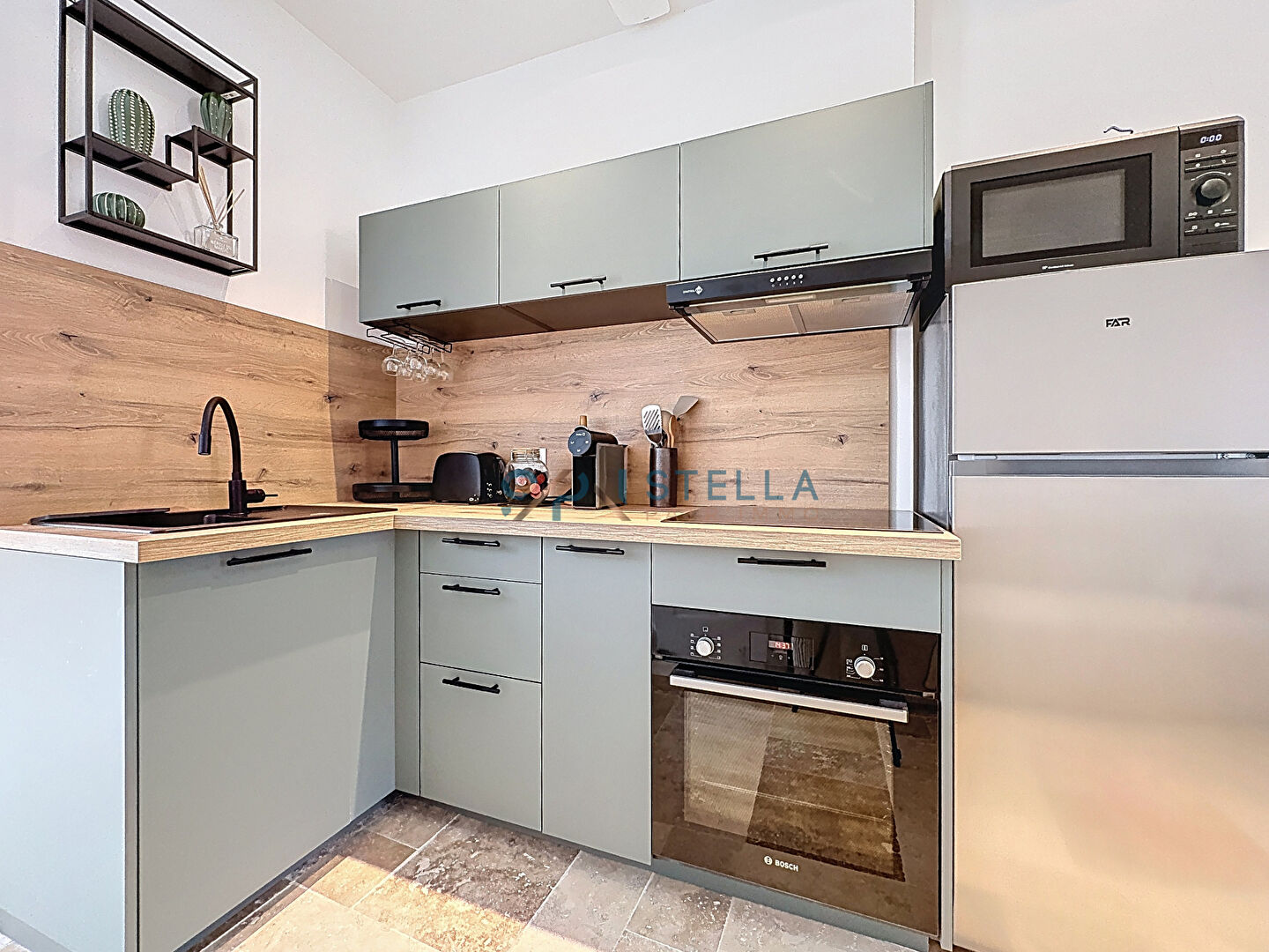 Entièrement rénové avec goût, l’appartement se situe au dernier étage de l’immeuble et se compose d’un séjour avec cuisine ouverte entièrement équipée.