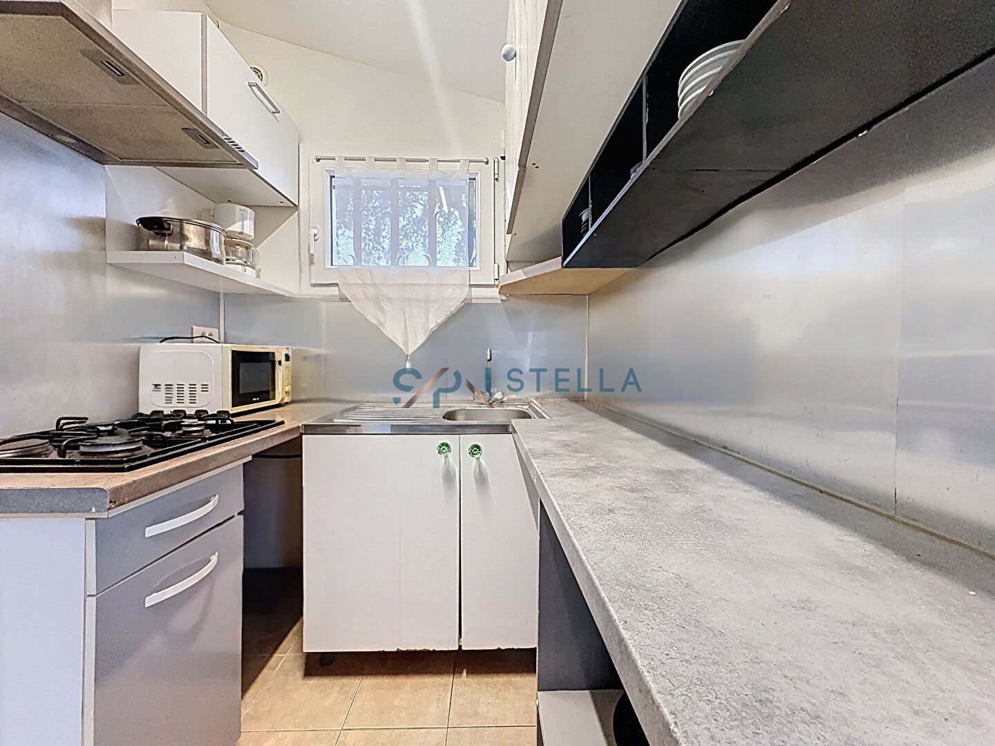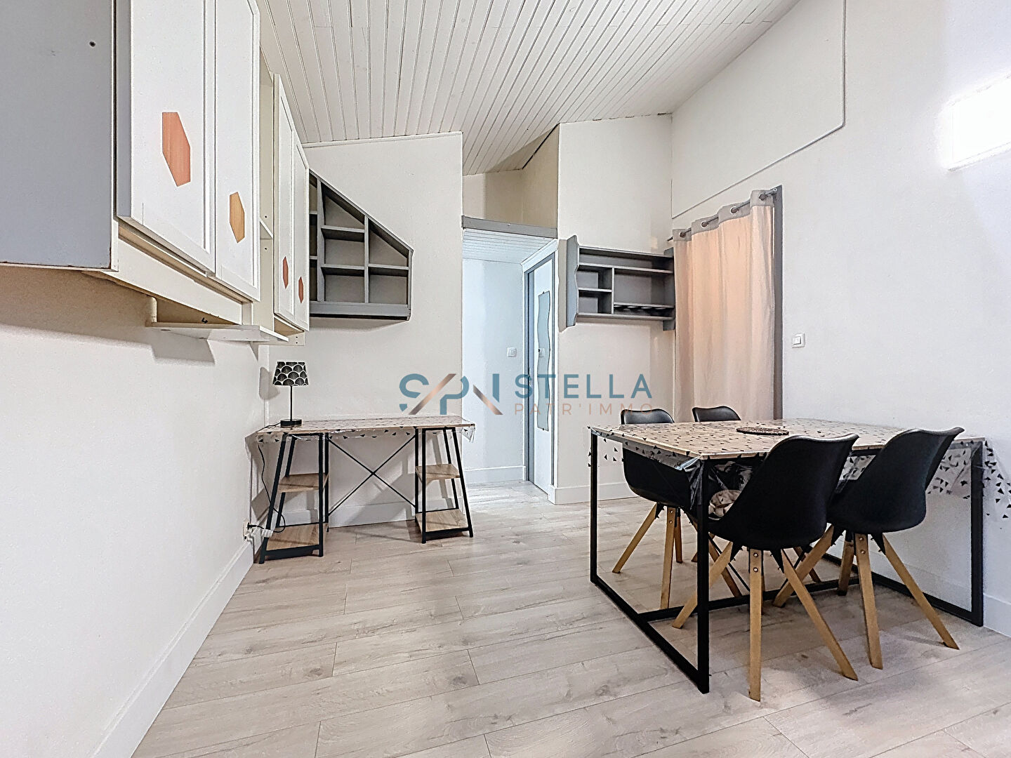 Le logement se compose d’une entrée desservant une cuisine équipée. Vous y trouverez un espace séjour avec des rangements ainsi qu’un coin salle à manger.
