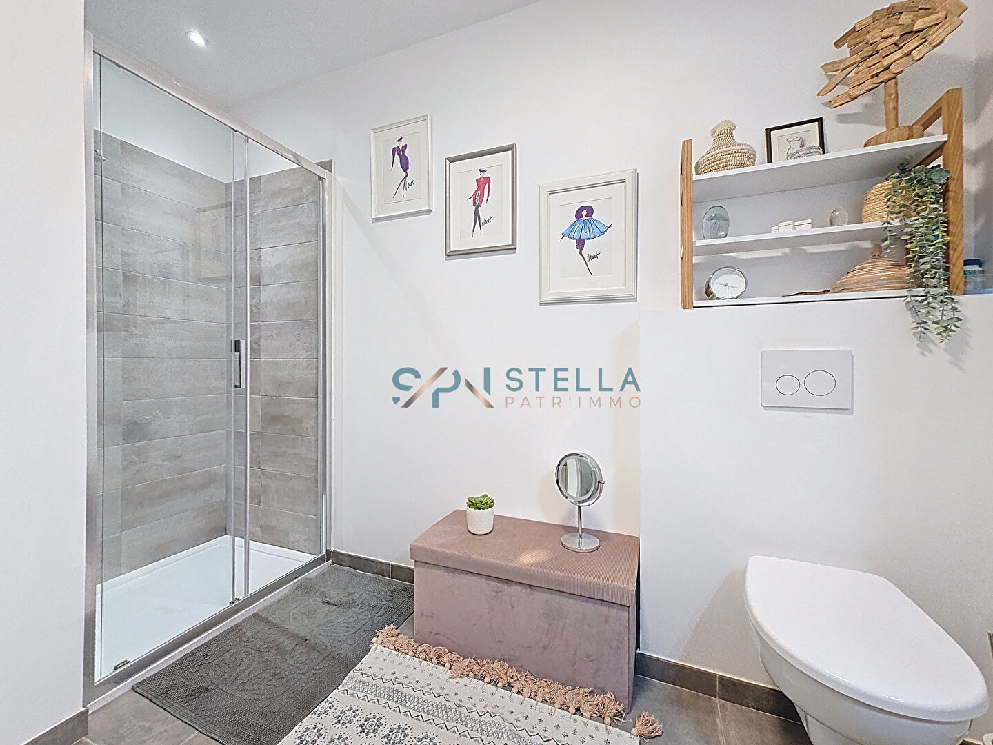 L’entrée s’effectue par la partie nuit, comprenant une chambre confortable ainsi qu’une grande salle d’eau de 6 m², équipée d’une douche à l’italienne et offrant des prestations modernes.