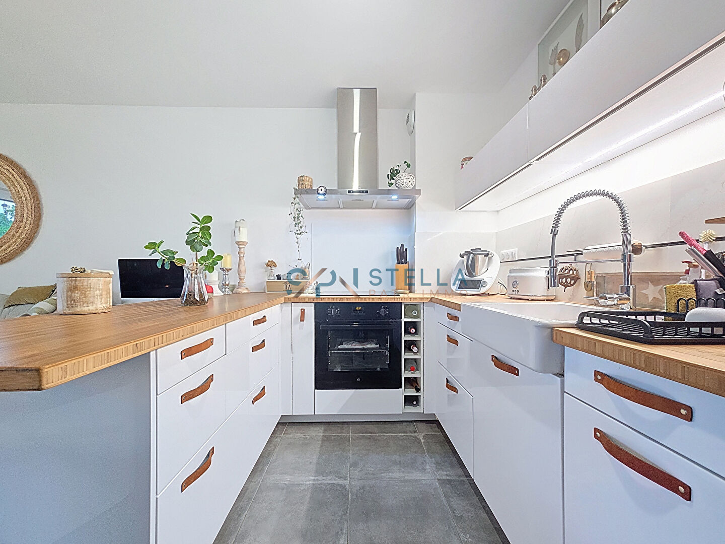 Le couloir mène à une grande pièce de vie de 30 m² avec cuisine ouverte sur le salon séjour.