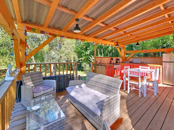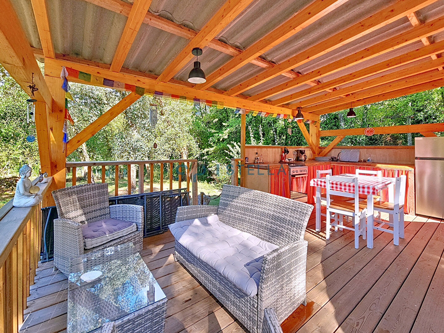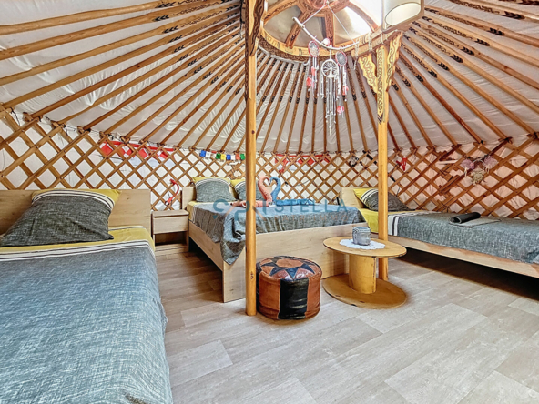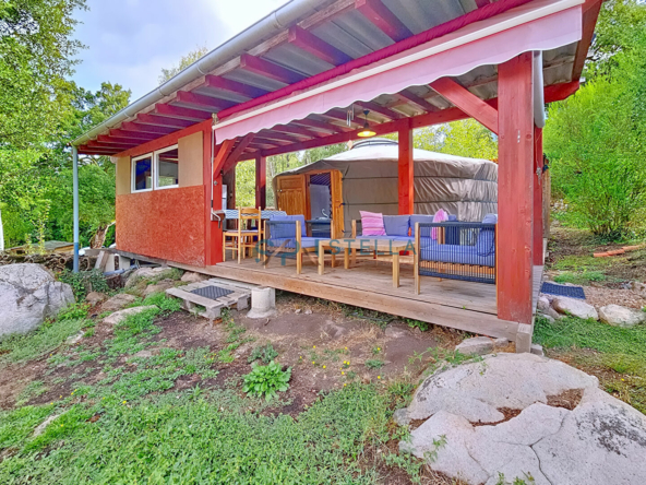 2 yourtes aménagées avec cuisine extérieure et terrasses en bois