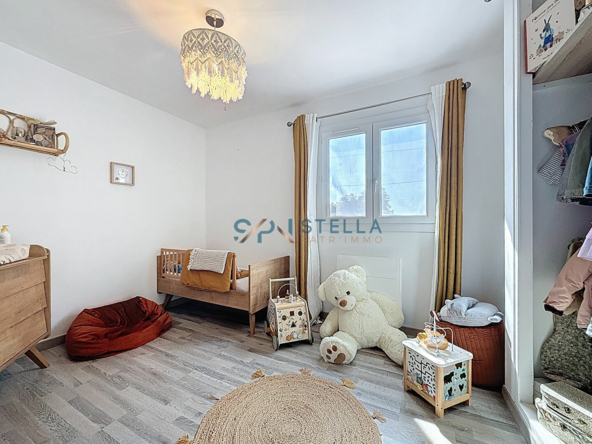 A l’étage, l’espace nuit se compose de trois chambres, dont une suite parentale confortable, ainsi qu’une seconde salle de bain contemporaine et deux WC pour plus de praticité.