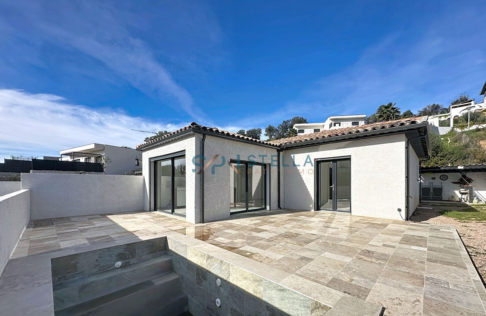 Le jardin, à la fois intime et facile d’entretien, offre un véritable espace de vie supplémentaire. Sa cuisine d’été et sa piscine en font un lieu privilégié pour partager des moments chaleureux en famille ou entre amis.