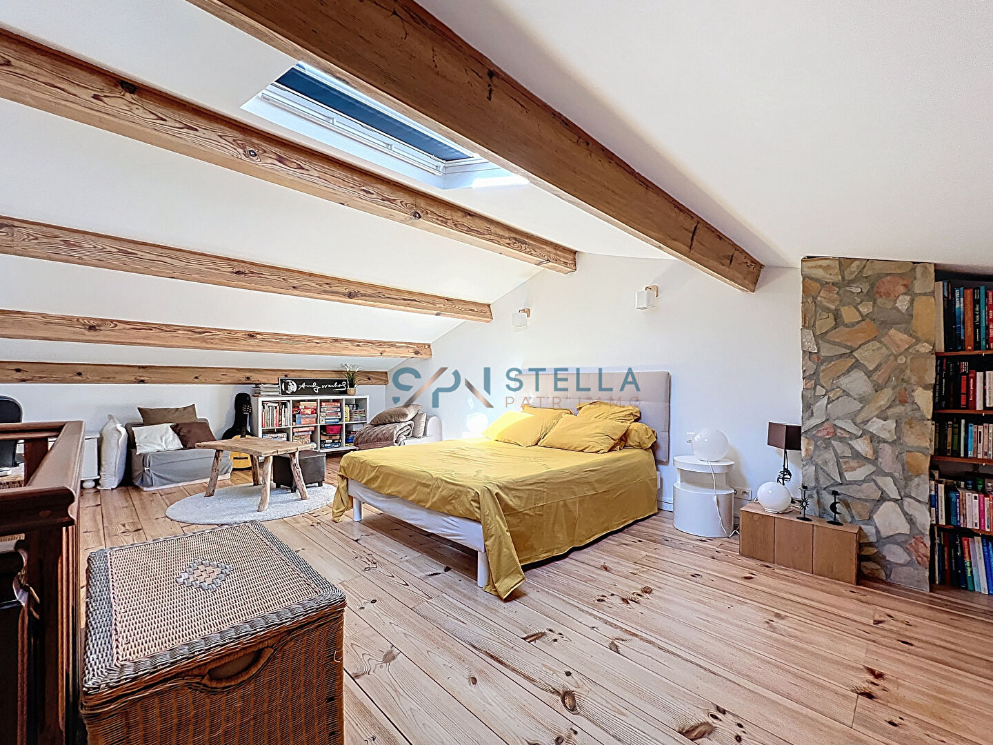 A l’étage, une grande chambre mansardée de 16,68 m² habitables (et 21,08 m² supplémentaires sous 1,80 m) complète l’ensemble. Cet espace, parfaitement indépendant et fonctionnel, offre un confort équivalent à une véritable chambre.