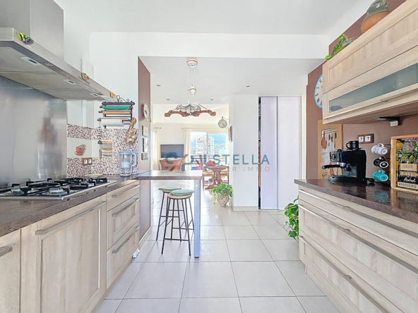Dès l’entrée, vous découvrirez une cuisine indépendante de 12m2 ouvrant sur un balcon avec aperçu mer, ainsi qu’un séjour spacieux de 28 m² prolongé par un second balcon offrant une vue dégagée.