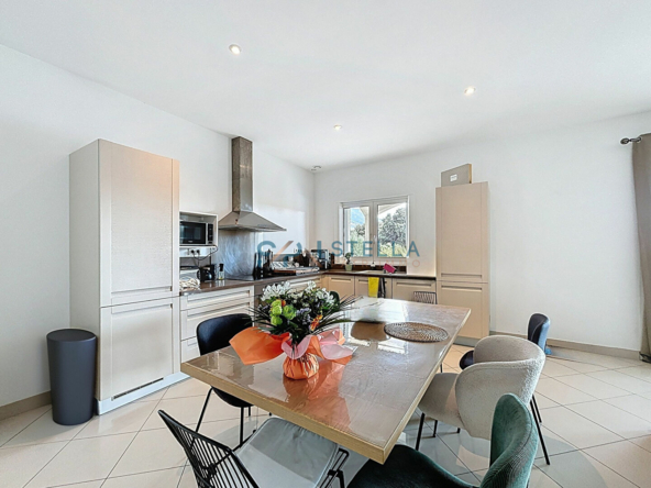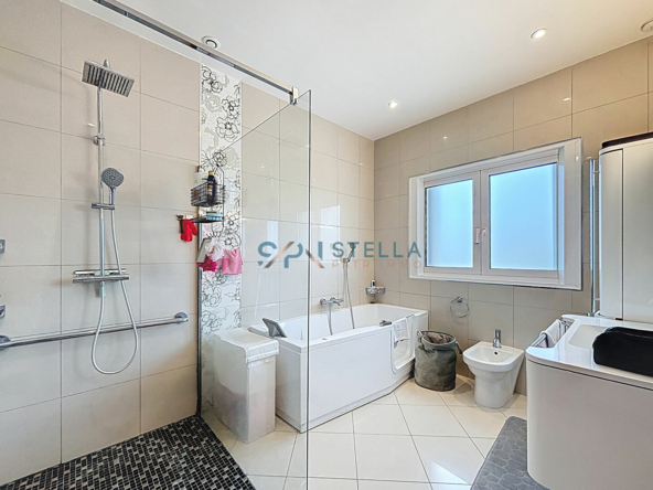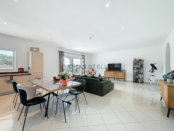 Cette villa de 132 m² habitables, entièrement climatisée, offre une vaste pièce de vie avec cuisine ouverte d’environ 54 m², trois grandes chambres lumineuses d’au moins 15 m² chacune, une belle salle de bain équipée d’une baignoire et d’une douche, ainsi que des WC indépendants.