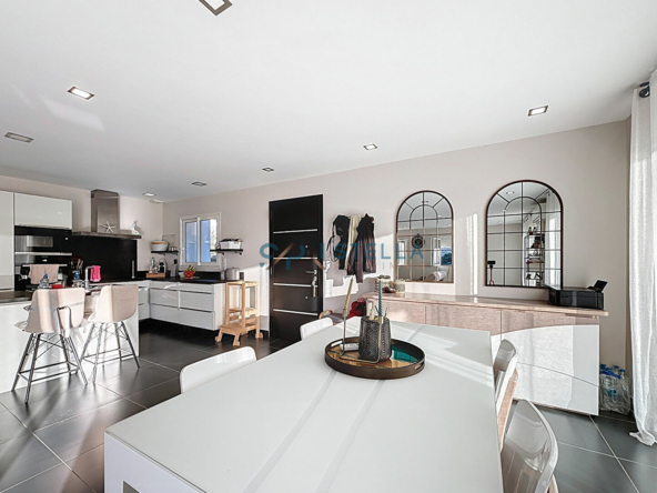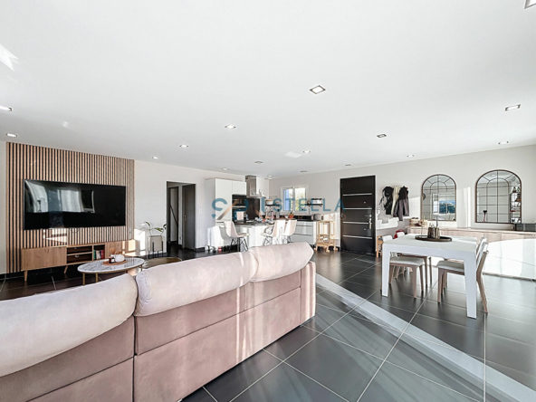 Dès l’entrée, vous découvrirez un vaste séjour avec salle à manger et cuisine ouverte d’environ 55 m², très lumineux et donnant accès à une grande terrasse avec vue dégagée.